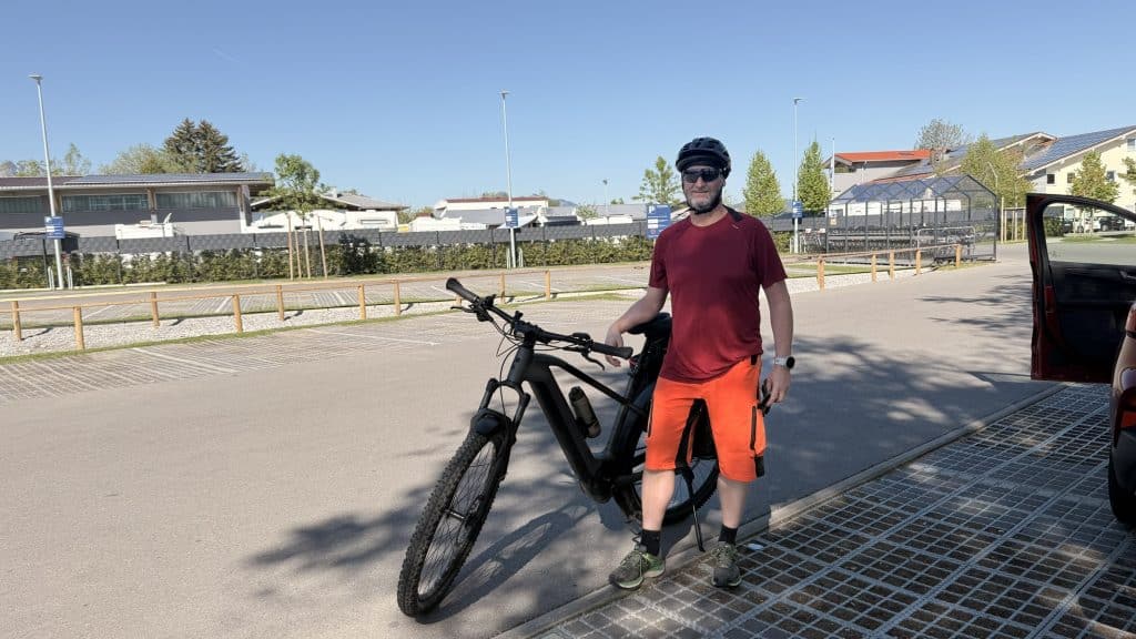 Am 1. Mai geht es noch mit dem Auto nach Füssen im Allgäu. Zum Glück sind wir früh dran, der Verkehr wird an diesem langen Wochenende noch ganz schön zunehmen. Der eigentliche Startpunkt, den ich mir in Komoot festgelegt hatte, am Festspielhaus in Füssen, geht dann vor Ort doch nicht. Die Parkplätze sind alle beschrankt und kostenpflichtig. Damit also nochmal eine kleine Runde gedreht und bei einem Supermarkt auf den Parkplatz.